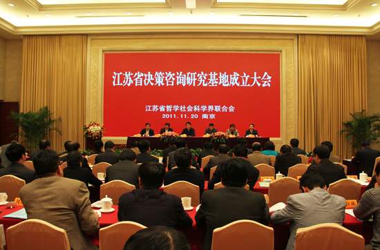 11月20日下午,由省社科联具体负责组建的26家江苏省决策咨询研究基地在宁召开成立大会,省委常委,宣传部长杨新力,副省长徐鸣,省政协副主席张九汉等出席了成立大会,并为决策咨询研究基地授牌,颁发首席专家聘书,省社科联党组书记,常务副主席张颢瀚教授主持大会,并介绍了研究基地的筹备,组织与成立等相关情况,部署了研究基地今后一阶段的主要工作,出席会议的有北京评委代表,各研究基地负责人,首席专家以及各研究基地所在高校(科研院所)分管领导,科研处长共100余人, 徐鸣副省长在成立大会上作了重要讲话 多多28ccmpc,他要求广大社科理论工作者围绕江苏率先基本实现现代化的新征程,新实践,充分发挥社科理论先导作用,他勉励各研究基地和受聘专家紧扣江苏经济社会发展大局,进一步强化社科理论咨询服务功能,充分发挥联合优势,努力把各研究基地打造成为省内一流,国内领先的高层次社科研究高地,(讲话全文另发) 江苏省决策咨询研究基地是省社科联根据省委,省政府主要领导的指示精神组建的,是江苏省委省政府决策咨询的主要智库,其主要宗旨是,贯彻党的十七届六中全会和省委十一届十二次全会精神,围绕江苏经济社会发展中的重大现实问题,开展面向“两个率先”的理论创新,全面提供各自研究基地所研究问题的国际前沿动态,国际相关经验,启示和发展趋势,深入研究国内前沿动态,相关经验和有关问题,充分调研江苏发展现状,相关问题,提出对策建议,为省委省政府决策科学化,为江苏经济社会发展提供长期稳定的咨询服务平台和有效机制,充分发挥江苏社科界思想库和智囊团的作用, 在组建江苏省决策咨询研究基地的过程中,罗志军书记专门作出重要批示,高度肯定“这是贯彻十七届六中全会和省委十二次全会的具体体现,对文化建设工程顺利实施有重要作用”,他指示有关同志“做好工作,取得实效”,李学勇省长也就此作出重要批示:“组建江苏省决策咨询研究基地很有意义,望围绕中心,服务决策,创新机制,集聚人才,扎实加以推进”, 自8月12日省社科联在《新华日报》等媒体发布研究基地招标公告后,全省社科界和高校反映热烈,全省共有近50所重点高校,党校和社科院(所)参与研究基地申报,同时,有30多个省级机关单位参加联合申报,并有中直机关和北京高等院校领导和专家40余人应聘担任首席专家,10月上中旬,省社科联约请中央财经办,中央党校,中国社会科学院的领导和著名专家对基地申报项目进行评审,得到了在京领导专家的大力支持与充分肯定, 决策咨询研究基地评审组专家,中央党校图书馆馆长陈高桐在大会发言时,对江苏省委省政府十分重视决策咨询工作予以高度赞扬,他说,省委主要领导亲自主持“两个率先”的重大课题,亲自过问研究基地的组织和成立工作,这充分说明了江苏不仅经济社会发展方面走在全国前面,而且在推动哲学社会科学参与决策咨询,提高决策科学化水平方面也走在全国前面,研究基地各项课题的设计科学合理,充分体现了“十二五”规划的重点内容,贴近江苏经济社会发展的大局,特别是课题由高校,政府机关和北京专家合作研究,形成优势互补,组织方式很好,是决策咨询研究工作的创新和突破, 徐州师范大学校长任平代表决策咨询研究基地在成立大会上作了表态发言,他认为,决策咨询研究基地的成立是江苏创新社科研究机制,创新知识生产机制和创新决策咨询机制的重大举措,是打造江苏社科强省的重要载体,是江苏社科界划时代的重要起点,他在发言中代表各研究基地和首席专家表示,将不负省委省政府的重托,在省社科联的具体组织领导下,凝聚力量,创新机制,围绕江苏“两个率先”大局,及时提供高水平,专业化的研究报告,把基地办成领导放心,人民满意的思想智库,为江苏社科强省建设和率先基本实现现代化贡献力量, 省社科联党组副书记汪兴国和机关处以上干部也出席了研究基地成立大会。
